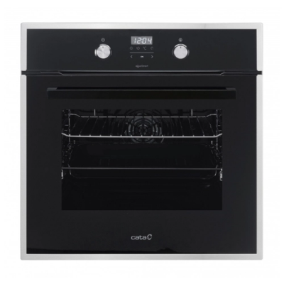 В духовке Cata OMD 7009 X гармонично соединились чёрное стекло (оно занимает 92% поверхности модели) и нержавеющая сталь. Полезный объём духовки составляет 60 литров. Шкаф оборудован 8-ю режимами нагрева. Функция ECO позволяет готовить с минимальными затратами электроэнергии за счёт автоматического отключения за некоторое время до окончания приготовления и использования остаточного тепла для окончания приготовления. Внутреннее пространство духовки легко очищается благодаря системе лёгкой очистки Aqua Smart. Максимальная безопасность эксплуатации достигается благодаря дверце с двойным панорамным стеклом (которое легко снимается для мытья) и тангенциальной системе охлаждения. Управление этой духовкой представлено утапливаемыми ручками Push Pull и цифровым дисплеем с сенсорным управлением, часами, функцией автовключения/выключения, возможностью программирования и индикацией режимов работы.