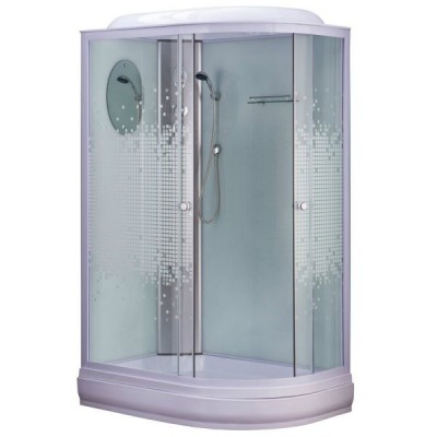 Душевая гидромассажная кабина Niagara — просторная асимметричная душевая кабина, которая снабжена идеальным набором функций, необходимых человеку для комфортного и полезного принятия душа. Угловая вариативность исполнения (левый/правый угол) и современный дизайн позволяют делать выбор в пользу данной модели. Оснащение кабины тоже на высоте: есть зеркало, радио, боковое освещение, тропический душ, гидромассажные форсунки и пр. Необходимые для купания предметы свободно размещаются на полочке, которая располагается на стене кабинки. Необычный мозаичный узор на передних стеклах, изящный белый профиль, блестящий белизной и аккуратно изготовленный акриловый поддон — и это все по отличной цене! Поддон усилен цельнометаллическом каркасом, имеет глубину 5 см, высоту — 20 см. Безопасное закаленное стекло толщиной 4 мм обладает высокой стойкостью к ударам, при случайном повреждении оно рассыпается на мелкие элементы, а качественные комплектующие будут радовать работоспособностью в будущем и долговечностью изделия в целом. С помощью одинарных саморегулирующих роликов дверные полотна двигаются плавно и бесшумно.