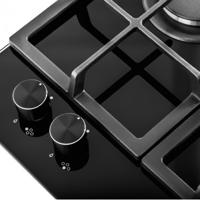 Черное закаленное стекло - эстетично и легко чистится. Поворотные переключатели для эргономичного контроля. Трехконтурная конфорка WOK: система трех контуров пламени для приготовления пищи на высокой мощности до 3,8 кВт. Для большего удобства решетки можно мыть в посудомоечной машине. Для безопасности использования предусмотрена функция газ-контроля и электроподжиг. Индивидуальные чугунные решетки для всех конфорок для высокой прочности и простоты в обращении.