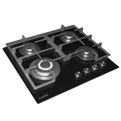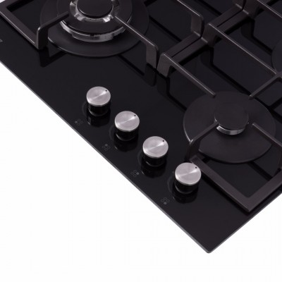 Черное закаленное стекло - эстетично и легко чистится. Поворотные переключатели: для эргономичного контроля. Трехконтурная конфорка WOK: система трех контуров пламени для приготовления пищи на высокой мощности до 3,2 кВт. Функции газ контроля и электроподжиг - для безопасности использования. Для большего удобства решетки можно мыть в посудомоечной машинке.