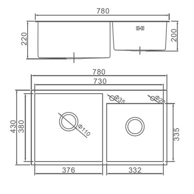 Кухонная мойка Gerhans изготовлена из качественной нержавеющей стали, толщиной: верхняя поверхность - 3 мм, боковая и дно - 1.5 мм. Модель комплектуется сифоном с запорным клапаном.