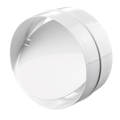 Соединитель d100 обр./кл – является неотъемлемой частью современных систем приточной и вытяжной вентиляций в жилых и нежилых помещениях. Деталь изготовлена из ударопрочного полистирола белого цвета, материала, который сохранит свои технические свойства длительное время эксплуатации. На корпусе присутствует обратный клапан, который противодействует оттоку воздуха. Модель предназначена для герметичного соединения двух круглых вентиляционных каналов диаметром 100 мм.