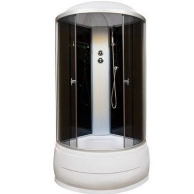 Передние стекла: тонированные. Стекло закаленное 4 мм. Ролики одинарные. Профиль: матовый хром. Душевая многофункциональная лейка. Верхний душ (тропический ливень). Полочка для ванных принадлежностей.