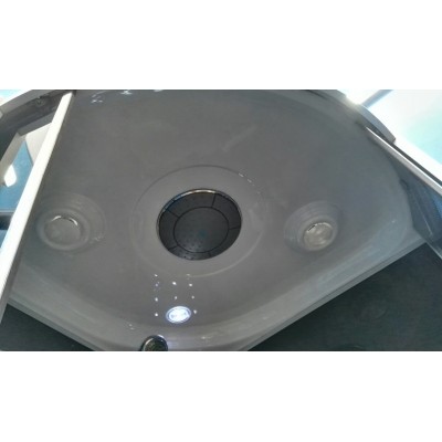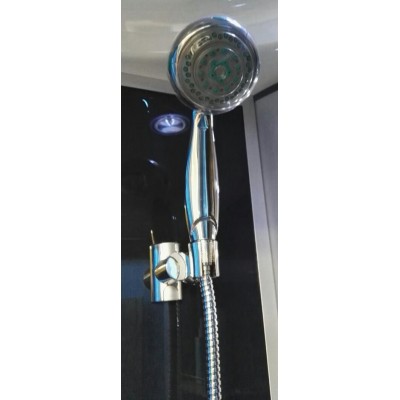 Акриловый поддон с сиденьем. Высота поддона (40 см). Слив располагается по центру левой стороны поддона. Металлический каркас жесткости поддона. Ножки поддона регулируемые, панель съемная. Сифон Кран для налива воды в поддон. Задняя стенка из стекла: чёрная. Передние стекла: тонированные. Стекло закаленное 5 мм. Профиль алюминиевый, матовый хром. Боковая и верхняя независимые подсветки. Вентиляция. Радио. Телефон (на входящие вызовы). Массажер ног. Душевая многофункциональная лейка. Верхний душ (тропический ливень) диаметр 23 см. Металлическая панель с регулируемыми гидромассажными форсунками (6 шт.) Спинка на центральной панели. Полочка для ванных принадлежностей. Зеркало.