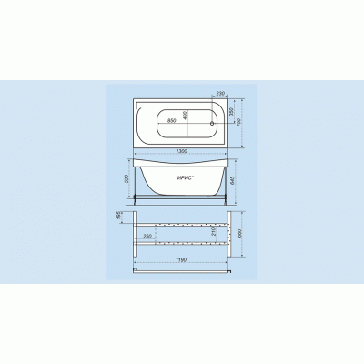 Ванна Ирис идеальный вариант для маленьких ванных комнат. Вогнутые борта ванны позволят удобно расположить руки, глубина ванны, которая составляет 41 cм, анатомический изгиб спинки позволит с комфортом разместиться человеку высокого роста. Рисунок послужит надежной опорой под ногами.