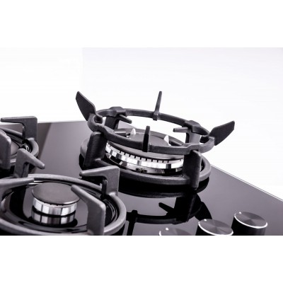 3 конфорки для компактного встраивания. Черное закаленное стекло эстетично и легко чистится. Поворотные переключатели для эргономичного контроля. Трехконтурная конфорка WOK: система трех контуров пламени для приготовления пищи на высокой мощности до 3,8 кВт. Для большего удобства решетки можно мыть в посудомоечной машинке. Функции газ-контроля и электроподжиг для безопасности использования. Индивидуальные чугунные решетки для всех конфорок для высокой прочности и простоты в обращении.